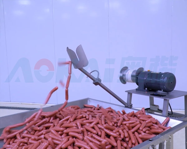 結(jié)構(gòu)簡單,原理是通過扎線機(jī)的線做為“刀子”剪斷香腸。The structure is simple, and the principle is to use the thread of the binding machine as a "knife" to cut the sausage.